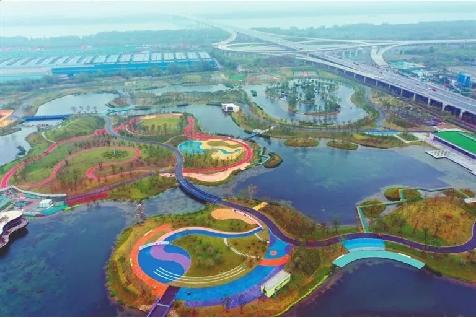 新化濕地公園項(xiàng)目結(jié)合城市規(guī)劃和片區(qū)水環(huán)境體系建設(shè),將貯渣場進(jìn)行綜合改造,因地制宜,循環(huán)利用,建成了一個(gè)集灰渣生態(tài)封存、污水廠尾水凈化利用、休閑健身、親子游園等為一體的多功能市民游樂公園。湖內(nèi)生態(tài)系統(tǒng)作為一個(gè)巨大的 “水質(zhì)凈化器”,能夠?qū)虮蔽鬯幚韽S處理后的達(dá)標(biāo)尾水進(jìn)行二次凈化處理,日凈水量近10萬噸。經(jīng)過凈化的水資源通過濕地系統(tǒng),輸送至多條河道,能夠幫助河道進(jìn)行補(bǔ)水、引流,從而改善區(qū)域河道水生態(tài)環(huán)境,逐步提高水體自我修復(fù)能力,實(shí)現(xiàn)片區(qū)水生態(tài)環(huán)境的良性循環(huán)。