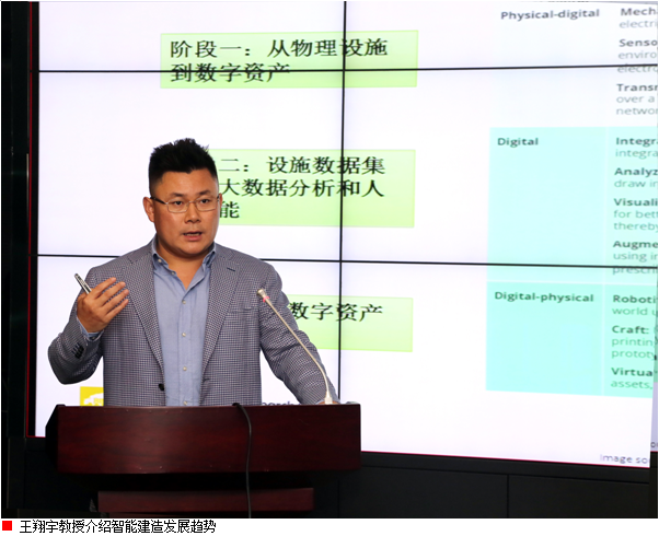 講座上,王翔宇教授介紹了澳大利亞BIM研究中心的情況,相關(guān)工程中BIM應(yīng)用以及展望,并對智能建造、精益建造、綠色建造、裝配化建造等前沿理念和技術(shù)方面進(jìn)行了闡述。