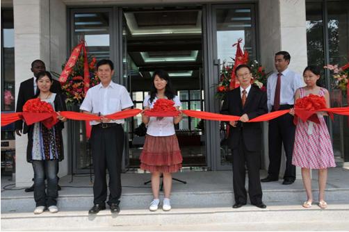 ■鐘山副部長(左二)、吳澤獻(xiàn)大使(右二)為新館剪彩